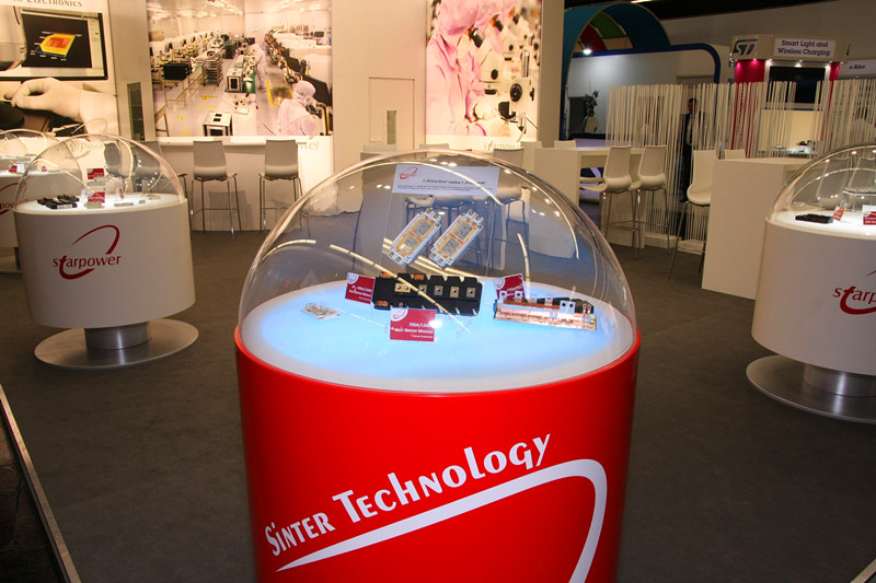 斯達半導體還在本屆展會重點展示了采用最新工藝的高可靠性模塊產品,包括采用了銀漿燒結工藝和銅線超聲波鍵合工藝的1200V/600AEconoDual 3模塊、1200V/1400APrimePack模塊和1200V/300A碳化硅MOSFET模塊。經過斯達歐洲研發中心近兩年的技術攻關,目前斯達已經在汽車級模塊中采用銀漿燒結技術和銅線鍵合技術,以進一步提高模塊的抗功率循環和溫度循環能力,提高模塊的可靠性水平。